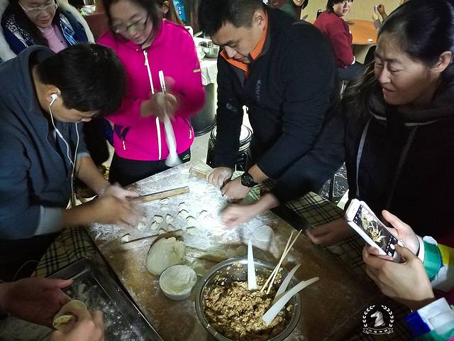 一说到过年,怎么能离开饺子,我们此次的行程中就包含了自己动手包饺子,和面、剁馅儿、擀皮儿、包饺子,大家各司其职,好不热闹。