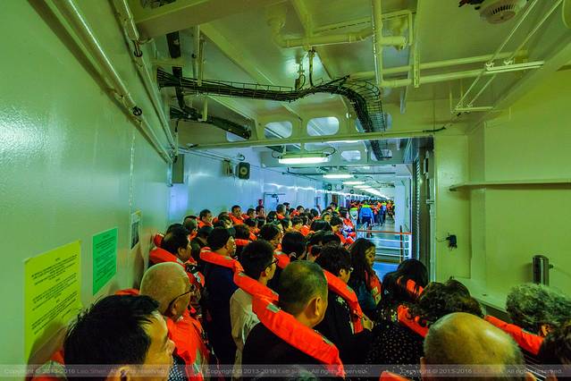 所有人第一次集体活动竟然是,竟然是,竟然是,逃生演习!好吧,既来之则安之,好在大部分人都是第一次坐游轮,所以带着好奇心整个过程不算太无聊,其实还有个原因,所有的乘客必须参加完成演习,房卡才会被认可开启正常功能,好吧,不管这个说法是真是假,我信了~
