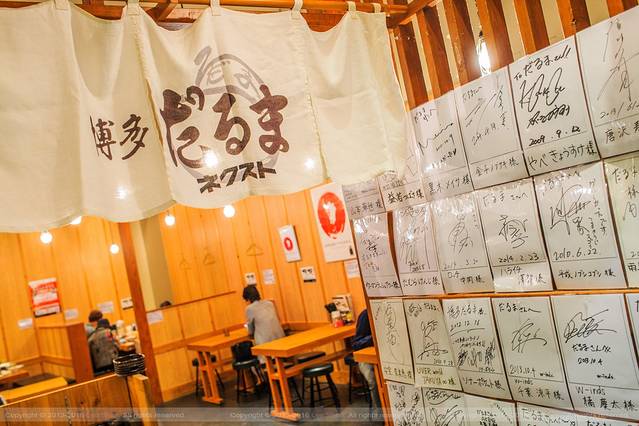 因为没有前往常规的购物点,选择了自由活动,所以歪打误撞的走进福冈当地博罗拉面非常出名的一家店,门口挂满了各个层面明星的签名。