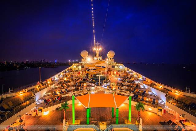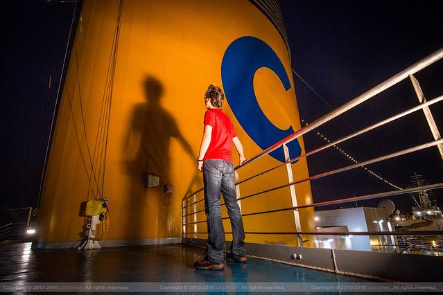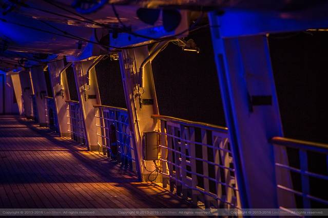 可能是累了,可能是对于登陆的期待,夜晚的甲板并没有什么人,看样子大家折腾了一天也累了,不过其实事后才知道,是因为当晚的风浪太大,好多人都晕船了,好吧,看样子一副好身板的要求除了能爬山,能跳伞,能潜水外,以后还要加上能坐船才好,哈哈。
