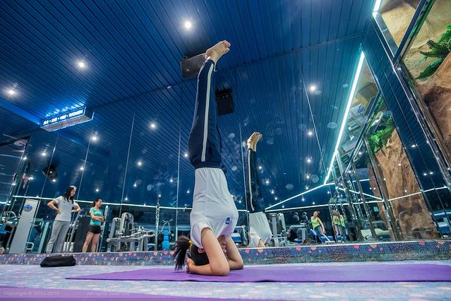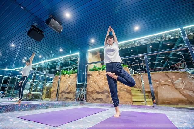 趁着游轮还没有正式起航,瑜伽达人秒如同学就带着两个“小跟班“”一起到健身房做瑜伽了。