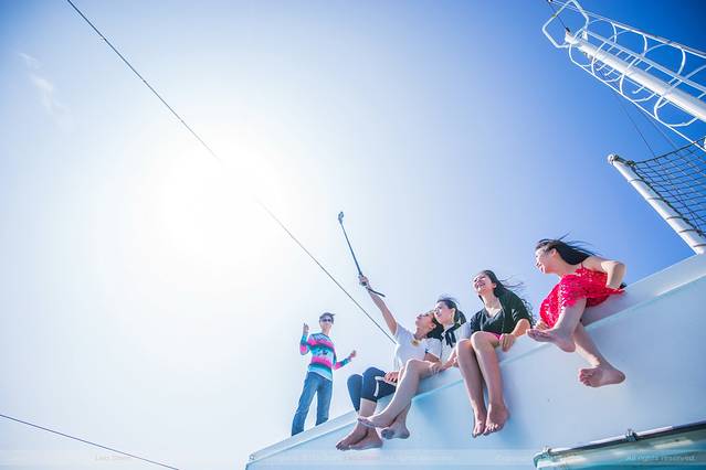 而这一天海上漂流日最重要的一个环节就是自我介绍,让我也终于知道原来此行中隐藏着首次露真容的@十三疯大神,还有业界资深旅行家狼叔@中山狼;人见人爱的巨咖(体重巨大 的咖)@老玉米;低调霸气的@多多 ;航拍砖家@李珩 ;人像风光大神 韦CC @韦苡珊 ;瑜伽伽达人 @噶玛妙如;特意从新加坡赶过来参加活动的美女@Love_Hyde ;以及活泼可爱的@minnie ,熟悉之后发现原来很多人早就互相仰慕已久,而这一次大规模面基的确了了不少人的心愿。