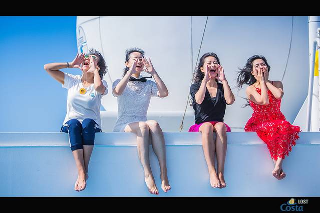 当看着港口越变越小的时候,也宣告着短暂而又令人兴奋的游轮之旅即将画上句号,于是小伙伴们开始进入疯狂留影,合影的模式,于是造就了跟中激情,基情,以及肌情,尺度之大,令人咋舌。