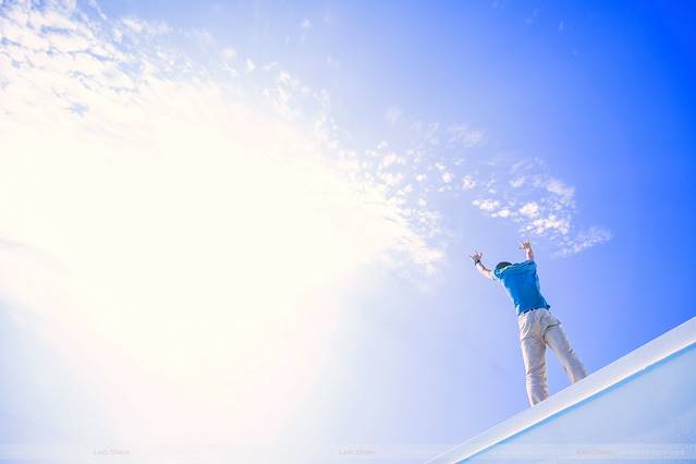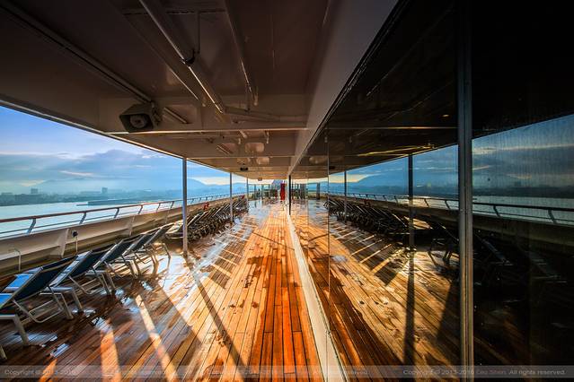因为行程改为日本登陆,所以按照之前的经验,日本的天气情况一般都会优于韩国,果然次日是个大晴天,所以小伙伴们早已按耐不住阴霾的情绪,纷纷跑到甲板上开启各种装逼照模式.....