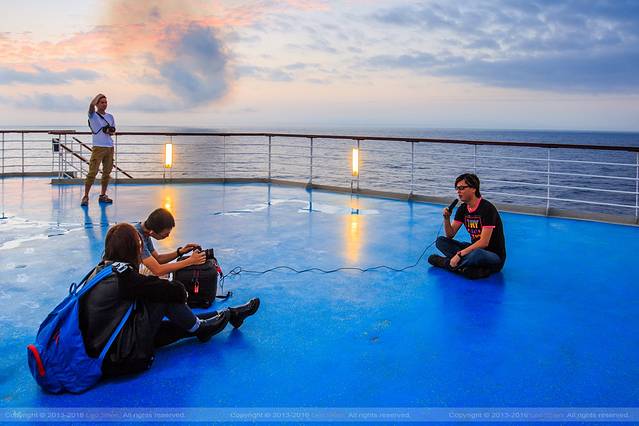 伴随着天边的夕阳渐渐退去,我们也刚好利用这一天海上行程完成了大部分活动的花絮拍摄。