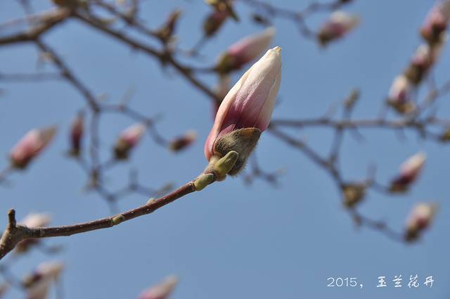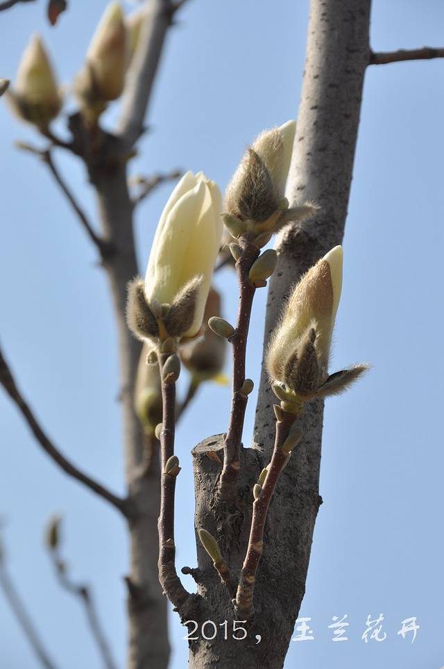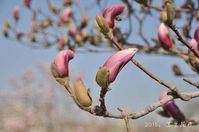 春天来了,花蕾慢慢长大了,随着气温的变暖,白色的,红色的玉兰花含苞待放。
