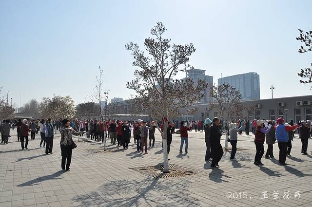 蓝天下,玉兰树旁,人们翩翩起舞。