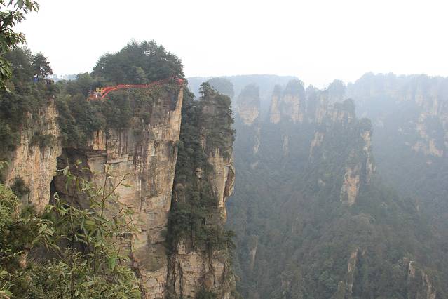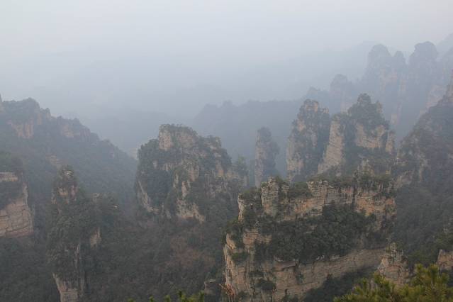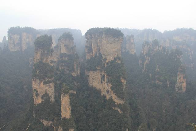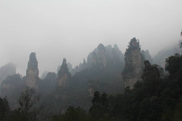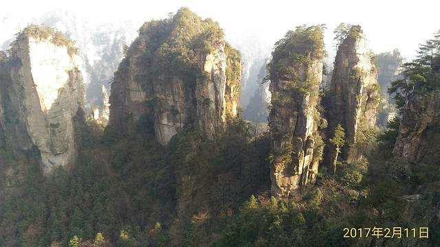 武陵源景区分天子山、杨家界、袁家界、黄石寨四个部分,共有5个门票站。在武陵源区直接到标志门主入口,进山!山上还是有雾,丁香榕附近有很多住宿店,条件也可以。入住率不高。