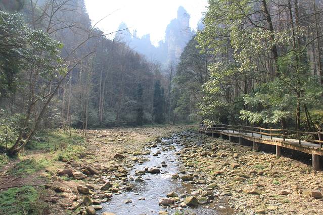 山里住两晚了,几天来,就有一种感觉,武陵源跟别的山都不一样,到底是哪不同呢?原来,武陵源没主峰,所有山顶都处于同一平面。突然想到放大的盆景!既然是盆景,那就是秀美,别考虑什么宏大、气势之类的。