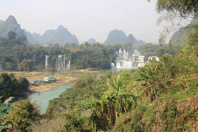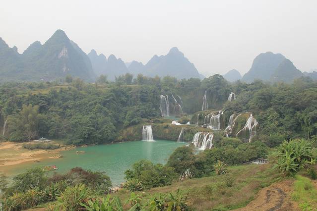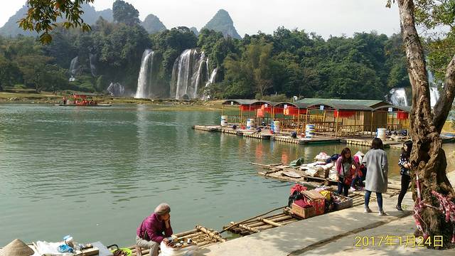 早起去德天,广西的德天瀑布与越南的板约瀑布紧邻,德天更大一点。现在写游记与古人不同,美景大家自己看图片就好。徐霞客时代主要通过文字描写景色,今天如果那么细致描写,我猜多半人会觉得咱有病!照片放上来,比什么文字都直观、精准、传神。注意,德天瀑布适合上午看,下午逆光。既然是边境,就少不了边民,很多越南人划着竹筏来这案卖东西,但不上岸。