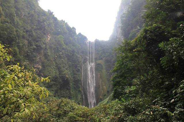 乌龙寨挺险的,只有一条路上下,路很险,很陡的石阶和铁梯。到山顶,一游客问一当地卖东西的老哥,还有路往前走吗?那老哥说:“有,顺悬崖跳下去!”我们在周围的人都笑了,笑之余,我在想:这老哥早晨肯定吃的钢丝面,到现在还没消化呢。