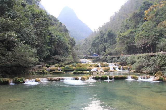 金城江到麻尾,火车一个多小时,麻尾到小七孔不到一小时。小七孔主要也是看水,风格有点类似于九寨沟,但略逊于九寨沟。景区出口有公交通县城,荔波县城吃住很方便。