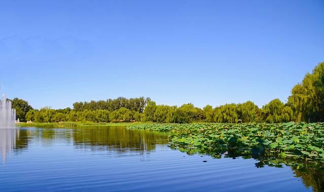 碧蓝的天和水 还有满池的莲叶