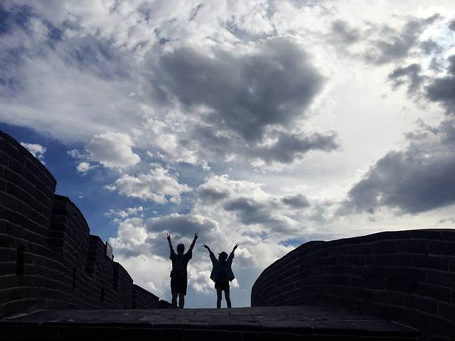 长城上风很大 爬累了就休息一会吹吹风
