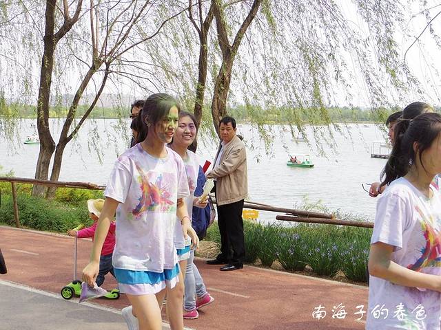 一进南海子就赶上了公园千人五公里欢乐彩跑活动,好不热闹。