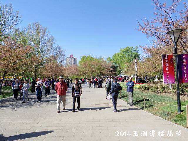 每年樱花绽放时,都会在玉渊潭公园樱举办樱花节,游客前往玉渊潭公园,可以欣赏到20个品种2000株樱花。樱花的花期极短,从开花到凋谢只不过七日之期,而整棵樱树从开花到全谢也只有两个礼拜左右。今年天气暖得早,一些樱花已经谢了。