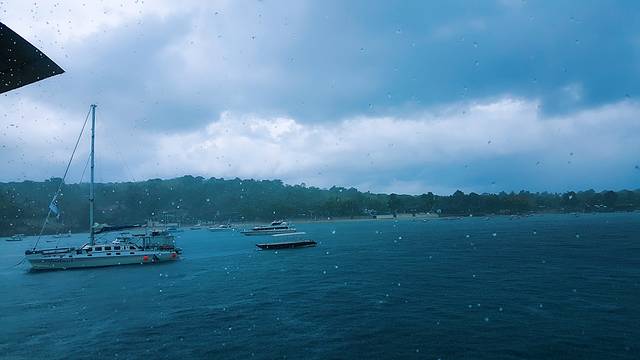 犹记得在蓝梦岛,从坐游轮上岛开始暴雨不歇,我心情被雨水浇的糟糕透了,非常憋屈!坐六个小时飞机飞来你就让我看所谓最美海岛这么糟糕的一面吗?反观游轮上的游客们却没有受暴雨一丝一毫的影响,依旧在暴雨中跳水嬉戏,摇滚蹦迪,民谣自弹自唱自娱自乐起来,在波涛汹涌的海浪中我随着音乐的起伏、人们的欢声笑语,心情逐渐回复平静,尤其看到一对“半路父女”一直走音却坚持唱完歌曲的可爱模样,我心境突然一下豁然开朗起来!是的!心内有阳光哪里都是晴天!