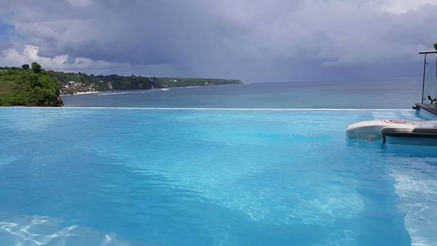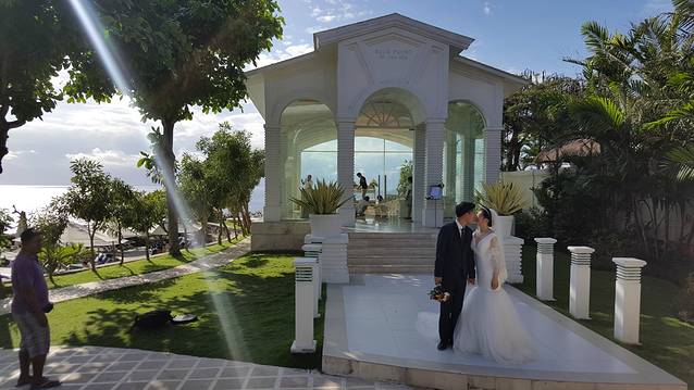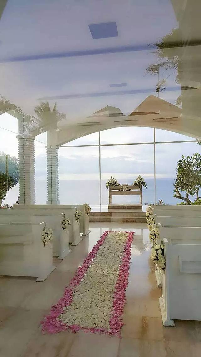 巴厘地标性建筑蓝色沸点酒店、刘恺威、杨幂拍摄婚纱照的蓝色玻璃教堂,惊喜见证了一对北京新人在此举行婚礼仪式,蜜月时光,浪漫满屋!祝福!顺便问了一下教堂租金价格,一万刀,还能接受吧?