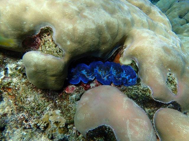 餐后我们开始探索海底的多彩世界。巨蚌城,这里的巨蚌已有上百岁。一个很老很老的大干贝,像个慈祥的老爷爷。一动不动的坐在那里。
