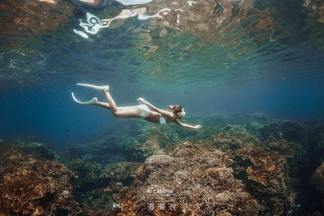 大断层是著名的潜水胜地,水很清澈,海底很壮观。也是跟拍的一站,穿上美人鱼尾,幻化成一条人鱼,自由自在的在水里游来游去,不得不说大断层真的是很震撼,不愧是大自然的鬼斧神工。