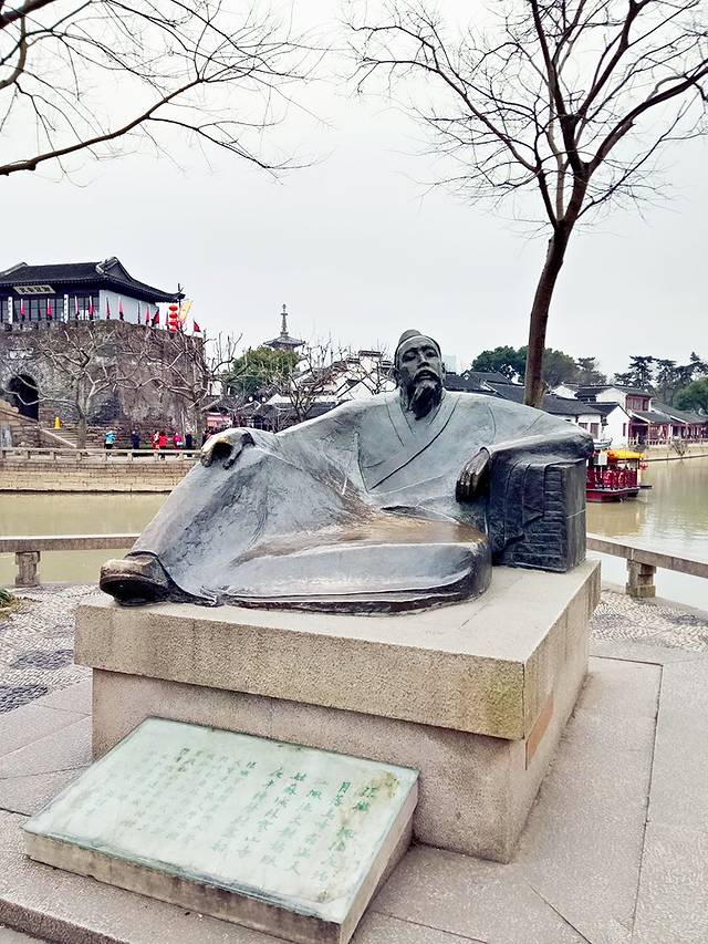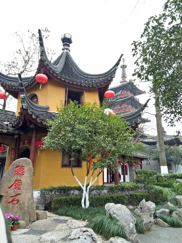 历史上寒山寺曾是中国十大名寺之一。这里的钟声因张继的《枫桥夜泊》而闻名天下。若非敬香,5分钟即可逛完全院。为了不辜负20元的门票,看看寒山、拾得的石刻像,文徵明、唐寅所书碑文残片寥表慰籍吧。