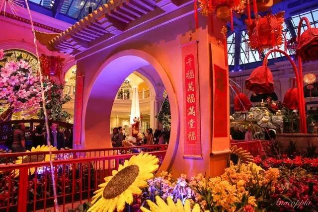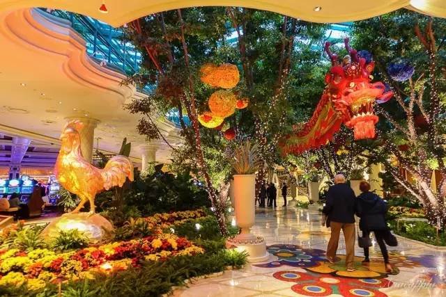入住Wynn Las Vegas后吃点东西,然后小憩片刻缓解一路飞行的疲惫。下午醒来走到Bellagio Conservatory & Botanical Garden(百乐宫温室植物花园)。这里有高山、阁楼、水池、小桥。因为是鸡年,山顶上最显眼的位置有一只公鸡,下面庇护着的是母鸡和可爱的鸡宝宝们。受浓厚的年味和热闹氛围在这里一点都没少,反倒感觉更增加了许多,实在让人倍感亲切惊喜不已!?