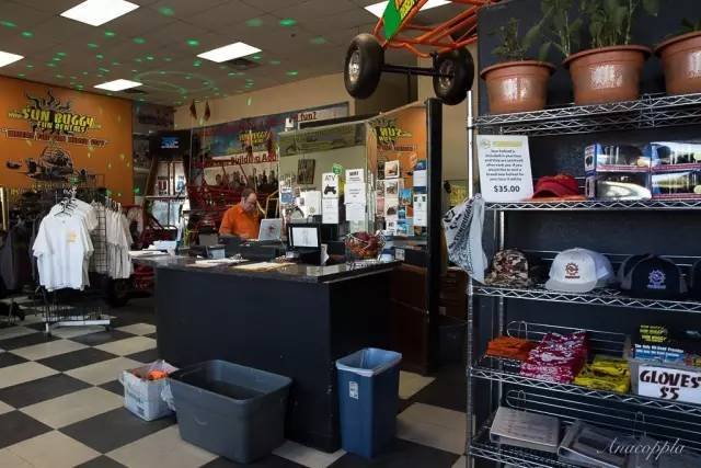 Las Vegas属于Nevada州,是个被荒凉的石漠和戈壁地带包围的山谷地区。这样得天独厚的条件让我们有机会去体验荒漠的广阔与狂野,所以提前预定了周边的Sun Buggy,一早穿梭巴士的司机在酒店门口接上我们前往目的地。酒店距目的地车程不远,一会功夫就到了。这个店看起来是不是很美国,我就是喜欢这种粗旷的感觉。