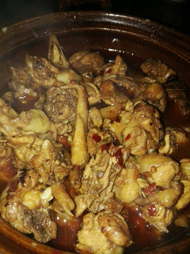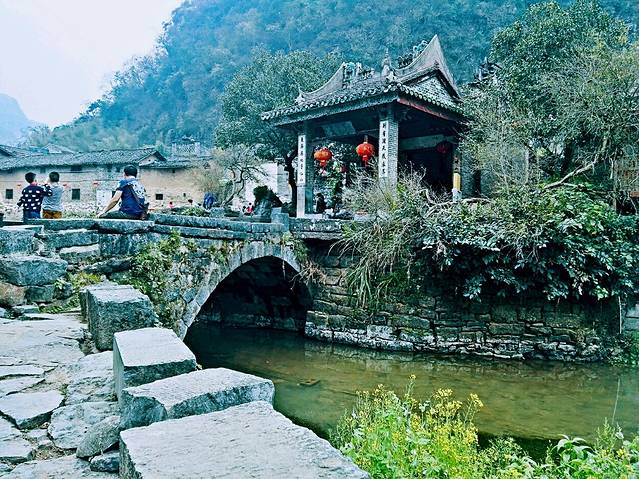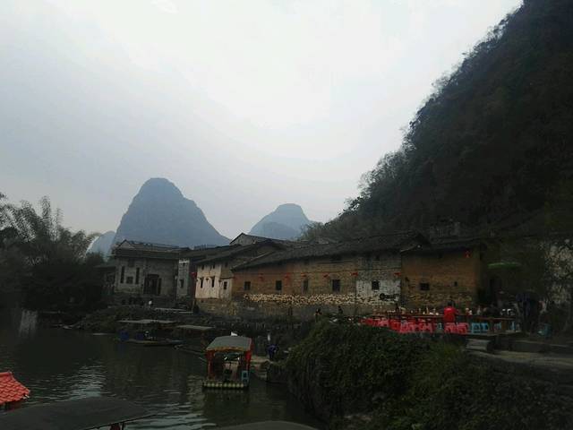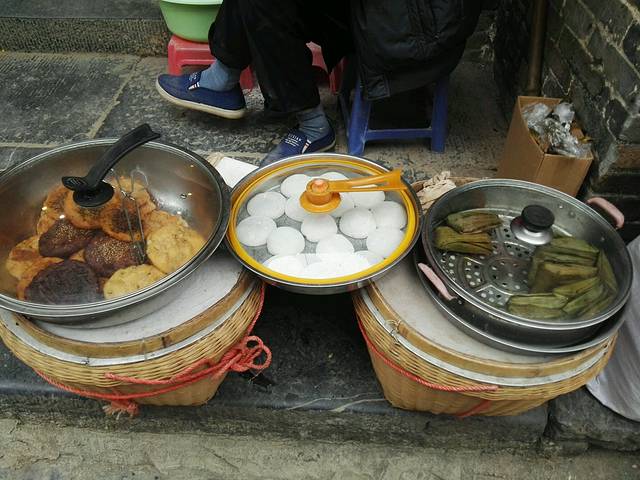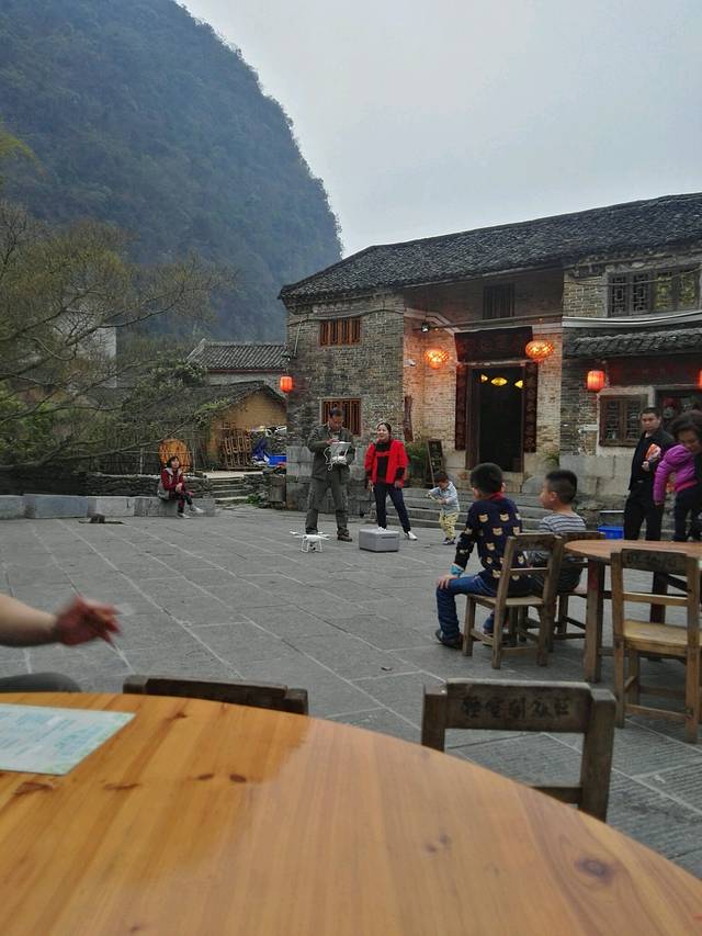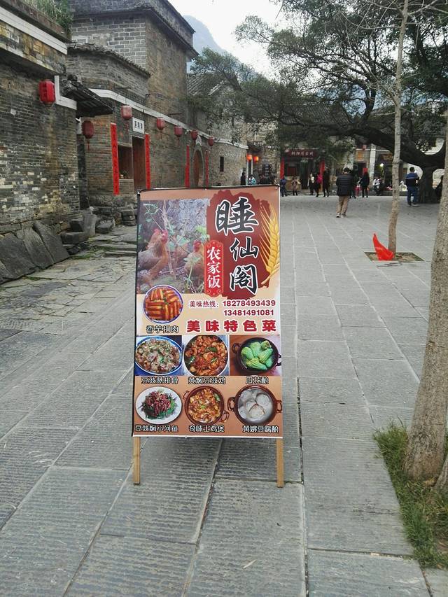 其实来之前我已经上“大众点评”搜过,推荐的食店真的不多,网友评论也少,经过中午那顿不咋地的午餐后,晚饭我们决定去试试来过的朋友推荐的那间——睡仙阁饭店。饭店就设在小河旁边,露天的,可以坐下来看着过往的行人和河上的小船经过,砂锅黄焖鸡一定要试,味道比较接近广东人的口味,很奇怪,每道菜都有下黄姚特产的豆豉,但囗感还是偏淡。当地吃饭消费不高,我们30个人分三桌,每桌点了十菜一汤,埋单一共才1200元。
