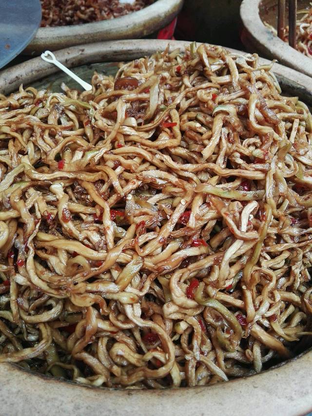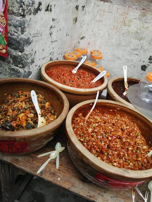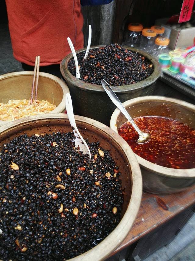 随处可见当地特色的酱菜,店家会给你一把小勺,让你随便试吃
