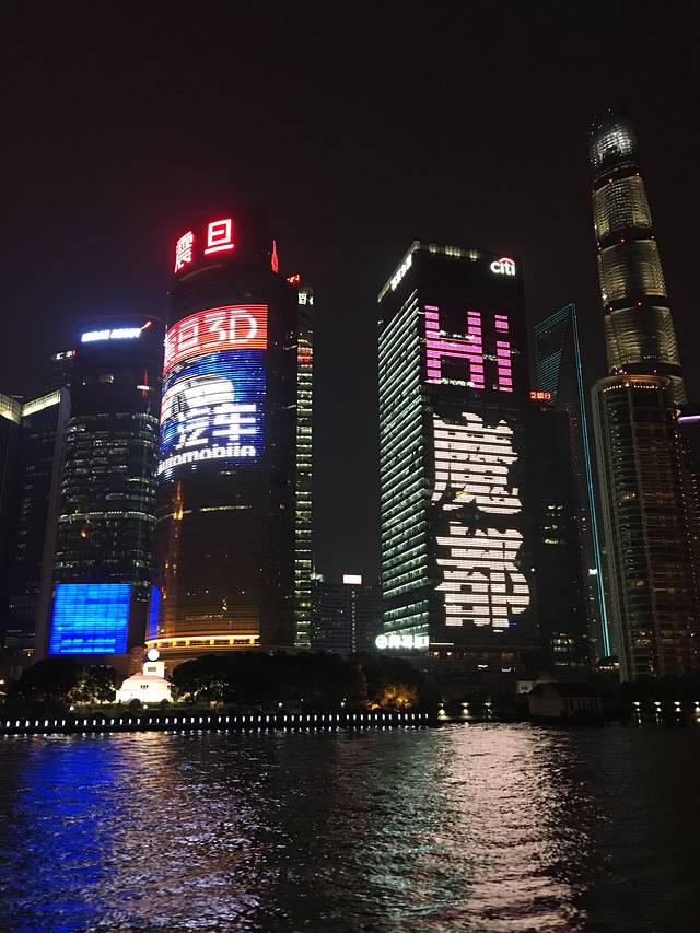 晚上六点半,船驶离十六铺码头,我发现此时游船是缓缓而行,能让游客能细细欣赏浦东外滩美景,因为这段景观是黄浦江外滩的精华之处,是上海的名片。