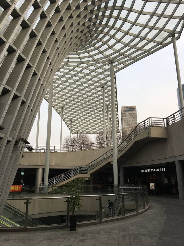 换完票,我们留步参观了旧貌变新颜的十六铺码头。改造过的十六铺码头很漂亮,飘逸型的房顶似迎风的帆又似飞翔的翅,建筑内部开了不少以餐饮为主的商铺,我们看到除了一家咖啡馆在营业处,其余的都没营业。