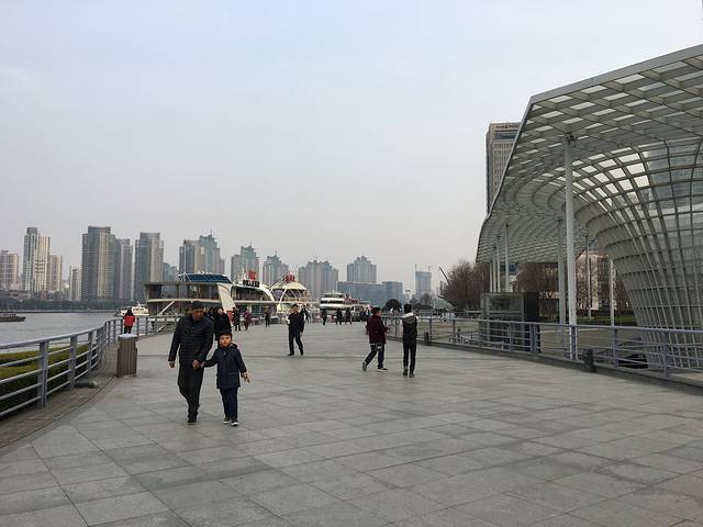 担心参与夜游黄浦江的人多,怕网上购的票换不到晚上六点半的船票,我们提前到娄山关路站乘坐公交站点离十六铺码头较近的公交车---71路中运量车,下午四点到了延安东路外滩终点站,我们朝右手步行500多米就见到十六铺码头。