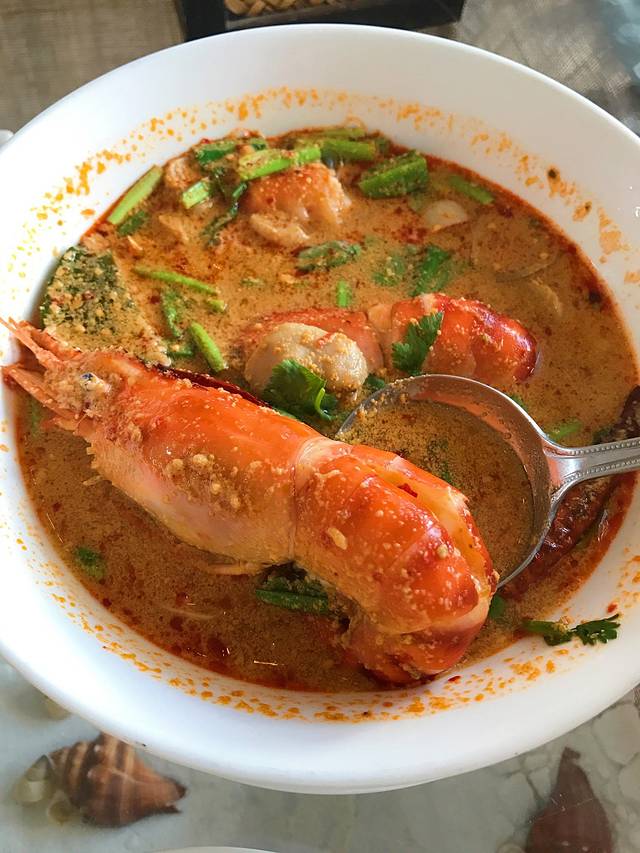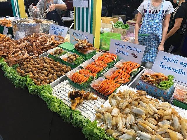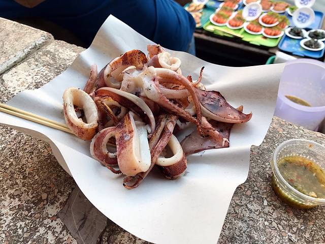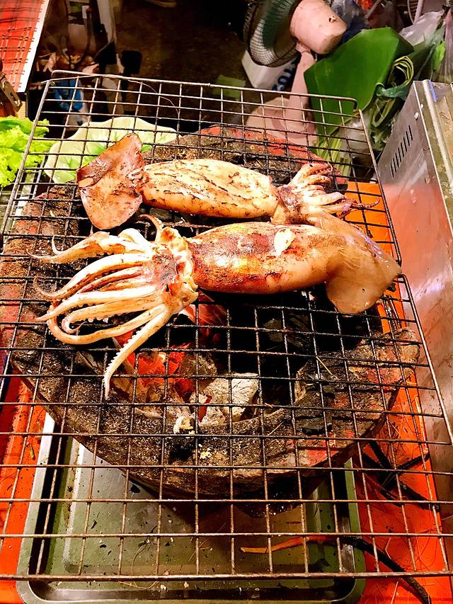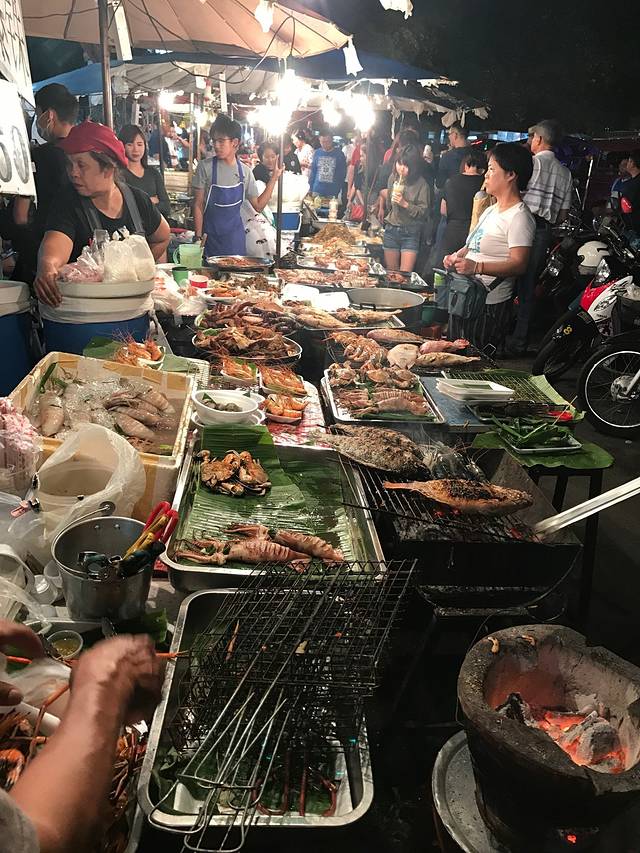 各色海鲜应有尽有,非常喜欢吃虾的我,一看到烤!大!虾!就必须要尝一下。清迈的口味和曼谷有所不同,蘸料的味道有一些怪,不是很喜欢。这时候要是给我来一点海鲜酱油,诶呦喂!