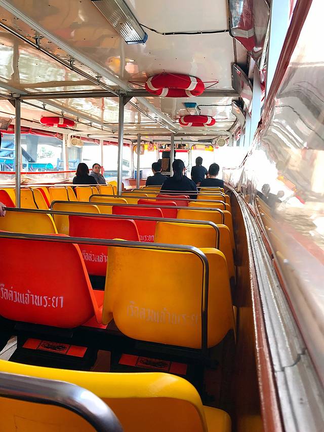 由于第一次去河滨夜市并没有逛完,所以晚上我们打算再去河滨夜市转转。福恩那空酒店离大皇宫不远,可以步行去N9码头坐公交船去Saphan taksin码头,走至码头最后面等河滨夜市免费渡船。也可以在N9码头直接坐蓝色旗的旅游观光船,直接到河滨夜市,不过船票要贵一些,40B/人。在夜市里有一家曼谷包,还有一家小老板,可以带一些特产回去送人,一站式就都搞定了。