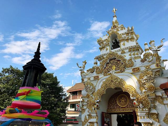 布帕兰寺,位于塔佩门外的闹市中,混合了缅甸和兰纳两种风格,是泰囧的主要取景地之一。