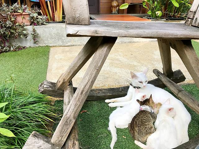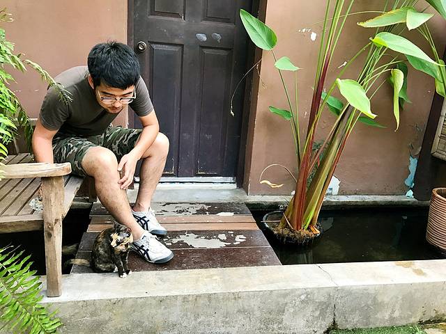 爷爷养了很多猫,早上醒来推开房门,阳光,棕榈树,时不时跑出来的小猫,都在诠释着“在清迈,时间就是用来浪费的”。