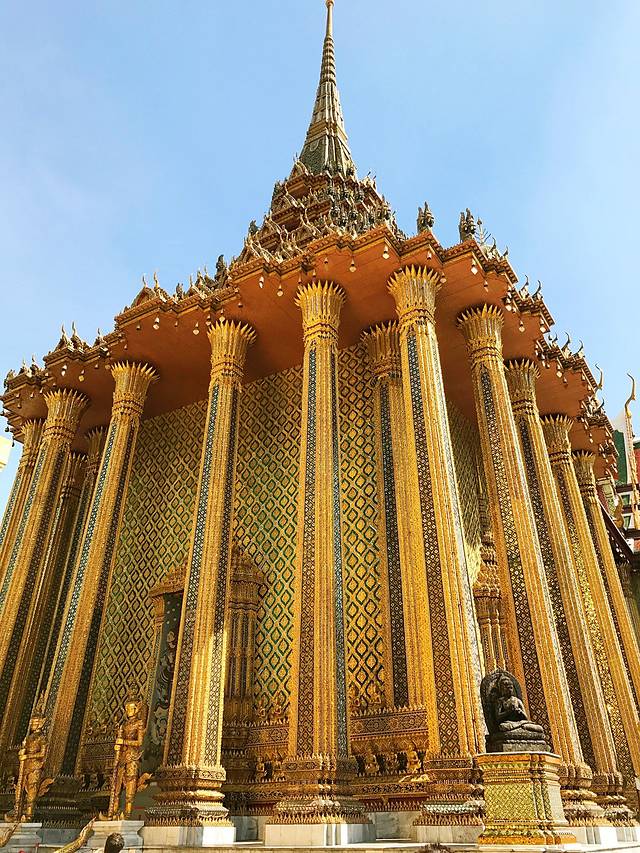 金碧辉煌的玉佛寺迎着大太阳根本睁不开眼。不得不感叹泰国的民族建筑和艺术工艺,不但美的叹为观止,周身强大的威严气场一点也不少。