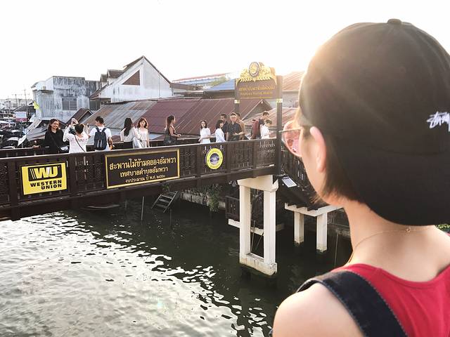 从美功铁道市场出来,可以坐双条车到安帕瓦水上市场,坐满10人发车,价钱我忘记了,不贵,一个人不超过20B。只是找这个乘坐双条车的地方我们找了很久,这里会说英语的人不多,大家有必要提前做好功课。当时和一对姐妹一起一路边问边打听,很久才找到,太过周折所以怎么走我没有记住。