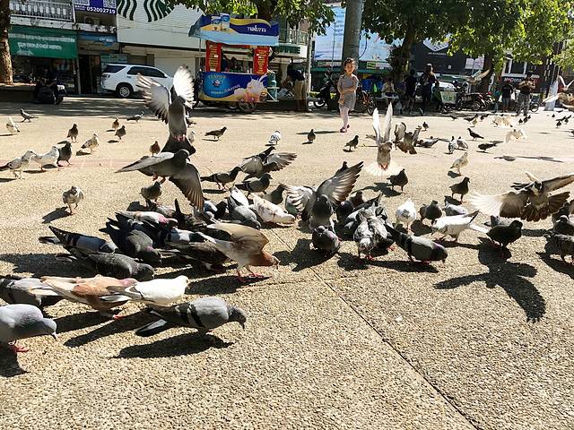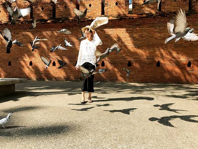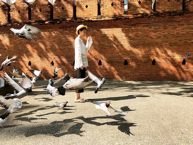 在广场上买鸟食的时候遇到了一位会说中文的泰国小哥。因为那一口地道的东北话,最初我们还以为他是来泰国生活的东北人!越聊越投机之后,热情的小哥开始教我们说泰语。原来“萨瓦迪卡”,男生和女生发音是不同的,女生要读“萨瓦迪卡~~~”最后的“卡”要拉长音,而且越温柔越好,显示女性的温柔。男生就要读“萨瓦迪卡bu”,最后的“卡”发完音就马上把嘴巴闭起来。像是久未见面的朋友,天南地北畅谈一番,直到感觉到有些饿了,我们才从塔佩门离开,告别了这位开朗的泰国“东北”小哥。