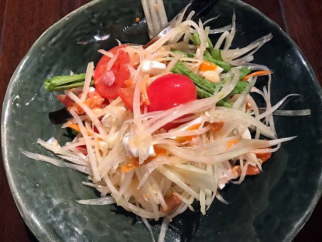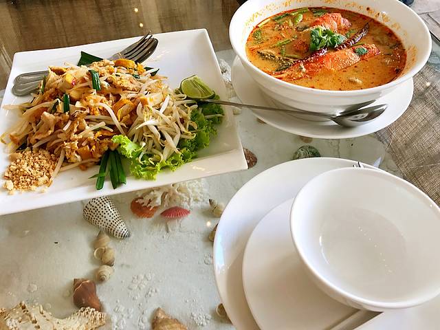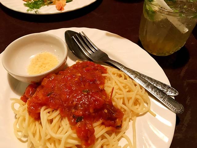 泰国的绿咖喱,自然要尝尝,但味道有些冲,和冬阴功汤一样我们还是享受不来。牛排和意面还不错,总体味道不及nara,但价格可以匹敌nara了。