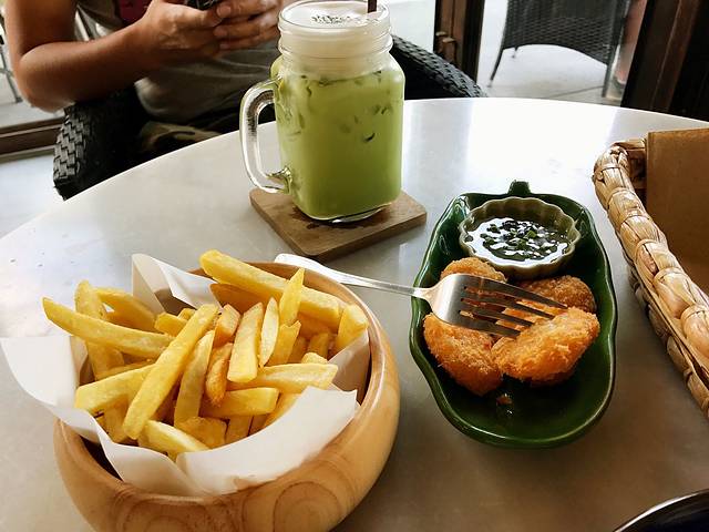前台会中文,沟通很方便,酒店可以帮忙租摩托车,也可以帮忙叫车去机场。虽然不在古城里,但是离机场比较近,我们第二天的飞机回曼谷,所以住在这里中转。