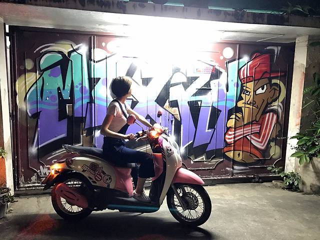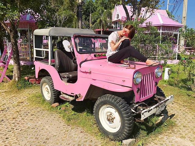下午回到了清迈,因为明天要回曼谷,所以在这里中转。只有半天时间但我们仍然租了一辆小绵羊,这次终于终于如愿以偿,租到了一辆高颜值的粉色小绵羊!