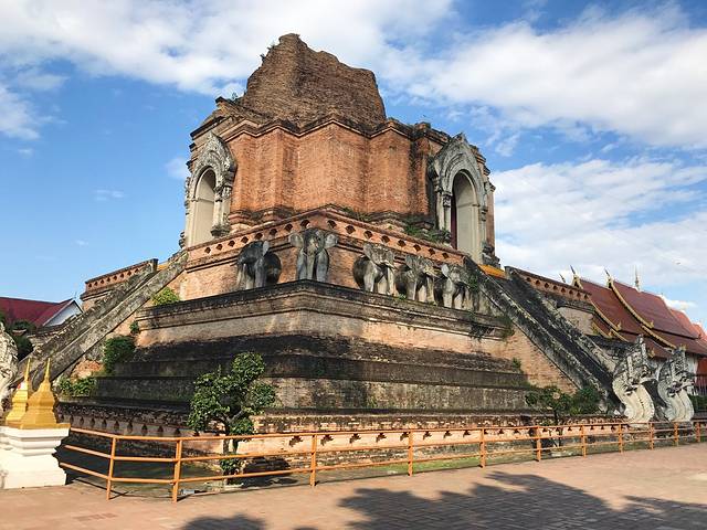契迪龙寺,是清迈市内六大寺庙中最为著名也是最大的寺庙,与帕辛寺同为清迈地位最崇高的寺庙。寺内有一座宏大的四方形佛塔,始建于15世纪初,以后数次增建,高达85.4米,据说可远望千里。
