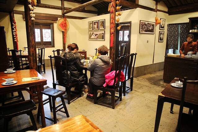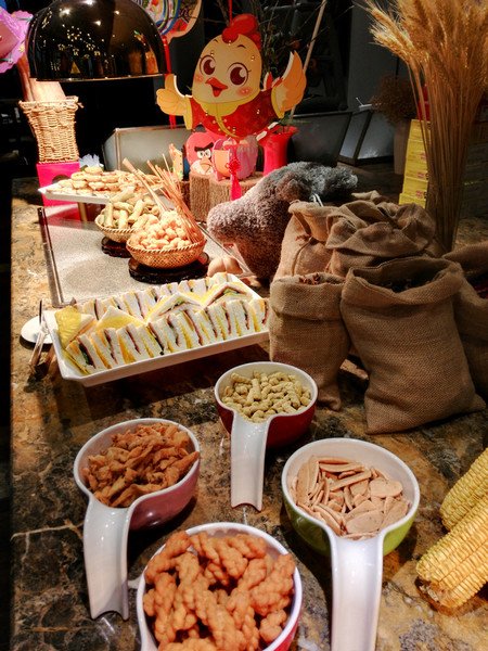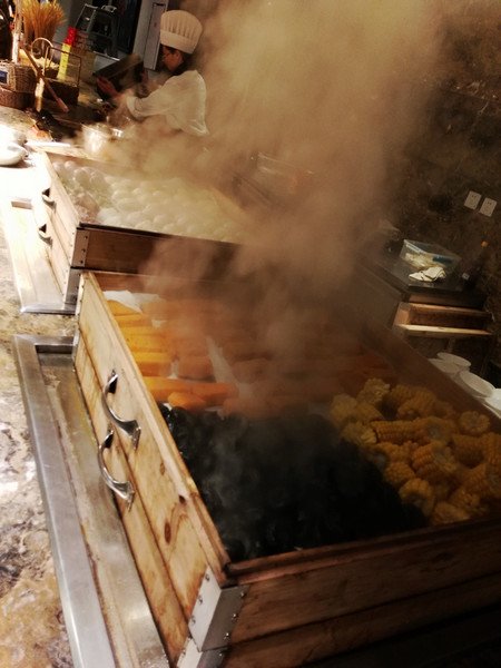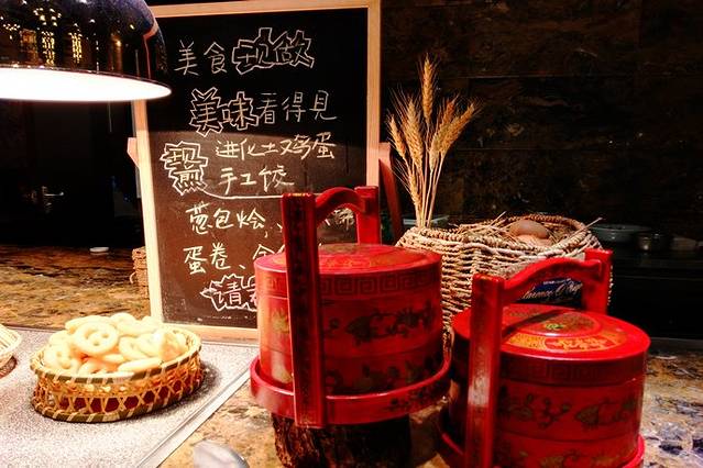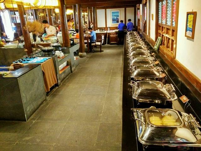 十七房的自助早餐品种丰富,中西式样皆有。中式主要偏向于宁波本地特色,如宁波汤圆和年糕等;西式的蛋糕面包虽不算十分精致,但味道香甜可口。酒店对于保持食物的新鲜度和口感极为重视,酸奶、水果与热菜、面食分别做了冷热保温处理,让客人能随时品尝到最佳口味。尤其是在这样的江南古建筑中用餐,完美地演绎了古朴与典雅的结合,吃也是一种意境吧。