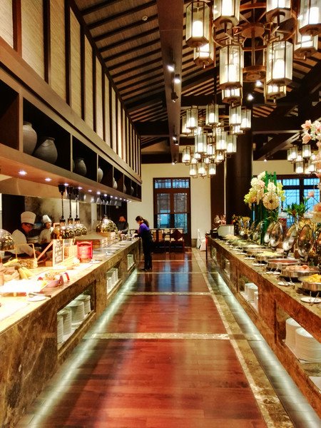 酒店有两个中西餐厅:翠餐厅(中)和仙那都(西)面积都偏小,碰上住店客人多的时候会有排队现象,毕竟酒店建在山顶吃的方面选择不多,餐厅的服务人员能力也有待提高。