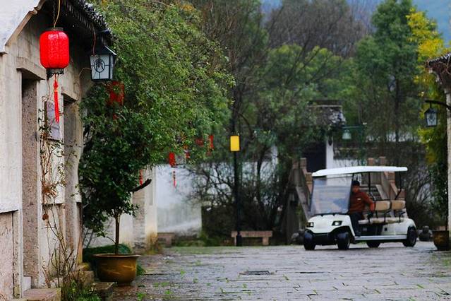 到酒店,下着小雨。不过烟雨和江南向来绝配,更能细细品味绍兴大禹世间桃源的意境。搭乘酒店方的电瓶车去大堂办理入住,一路欣赏着小桥流水、白墙黛瓦和亭台楼阁。