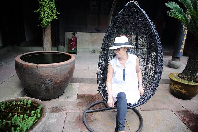 在客房稍作休息,家人们便迫不及待地开始在十七房的巷弄间捕风捉影。屋外的四方院落,青石铺地,摆放有绿色植物、藤条桌椅以及文艺范的秋千。在午后的阳光下闲坐庭前,凹凹造型拍拍照片,真是一种美好的惬意!