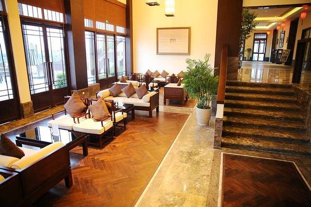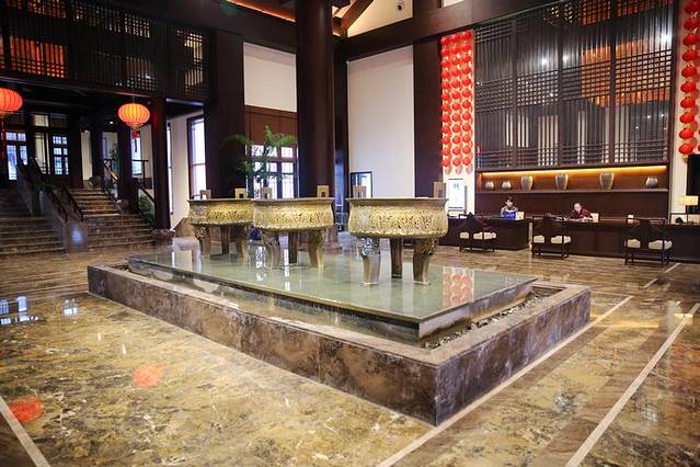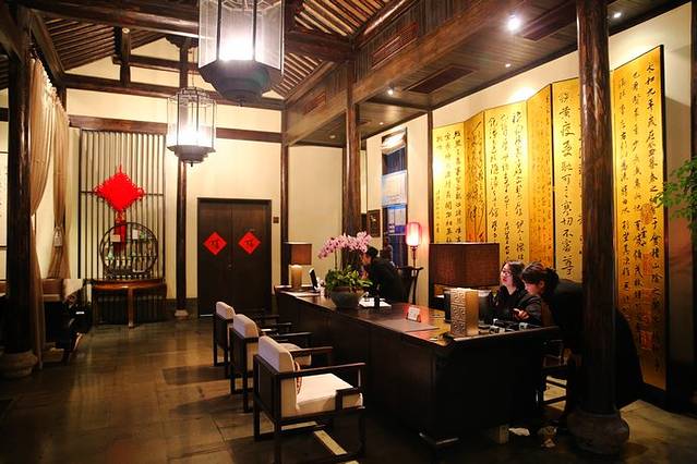 对杭州天域的大堂非常有感觉,粗大的圆柱加上古色古香的装饰,再伴随着耳边古琴的悠扬乐声,古典的浓郁仿佛让人瞬霎穿越。