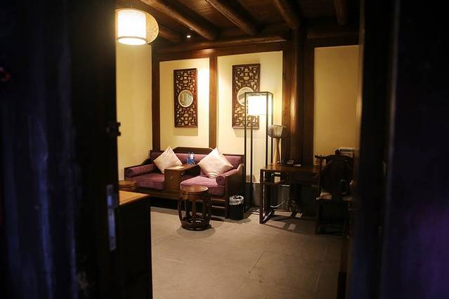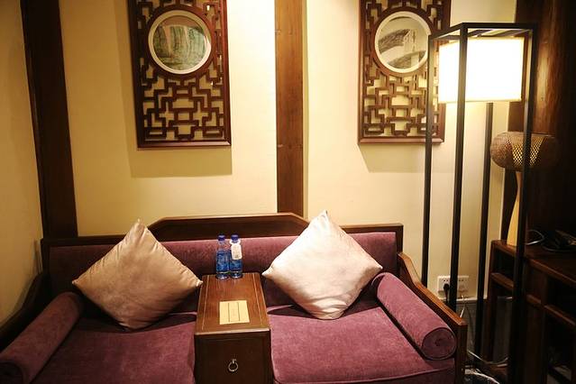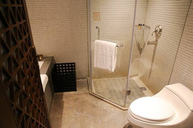 酒店的前台check in后乘坐电瓶车去“老郑家”,安排入住的是6号院子恒祥房,用挂着木制门牌的钥匙打开房门,只见客房的面积很大,即便是最低价位的东西厢大床房也是套房的形式。内部以明清雅致的传统家具装饰,一股浓浓的中国风扑面而来,再配上现代化的科勒卫浴、飞利浦液晶电视和舒适的床上用品,明亮宽敞的盥洗室有超大浴缸真是出乎意料,整个房间的布局游刃有余地行走在古典与现代之间。