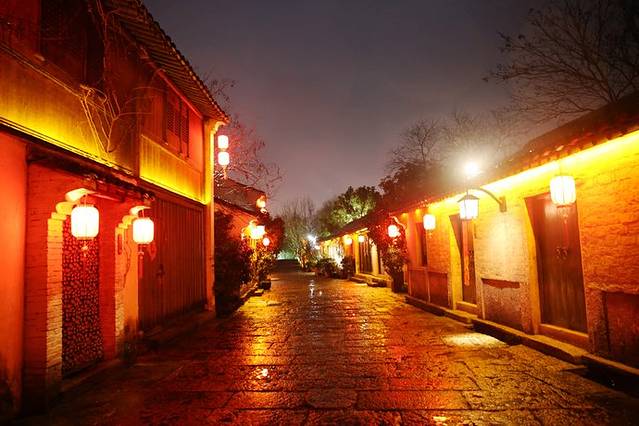 从禹家小厨吃完晚饭出来,平成街上的红灯笼已经亮了起来,处处充满着古老斑驳的历史印记。街上的灯光有些昏暗,不敢走得太深入就回房洗漱,宁静的夜睡得安稳。